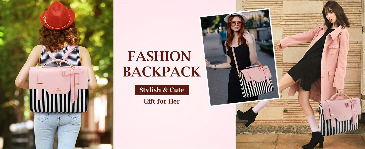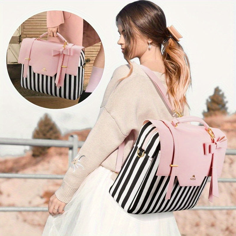 Enhance your daily look with this elegant 15.6" convertible laptop backpack! Its chic striped design with a bow accent offers both style and functionality. Perfect as a gift or for everyday use, this bag blends fashion with practicality for women who love to stay organized on the go.