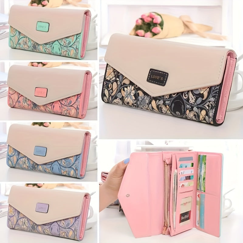 Add a pop of color to your everyday routine with this chic floral tri-fold wallet. Crafted from faux leather, it offers a variety of compartments to store cards, cash, coins, and even your phone. With a stylish random floral print and secure buckle closure, this wallet is both fashionable and functional. Perfect for daily use, it comes in a variety of vibrant colors to match any outfit!