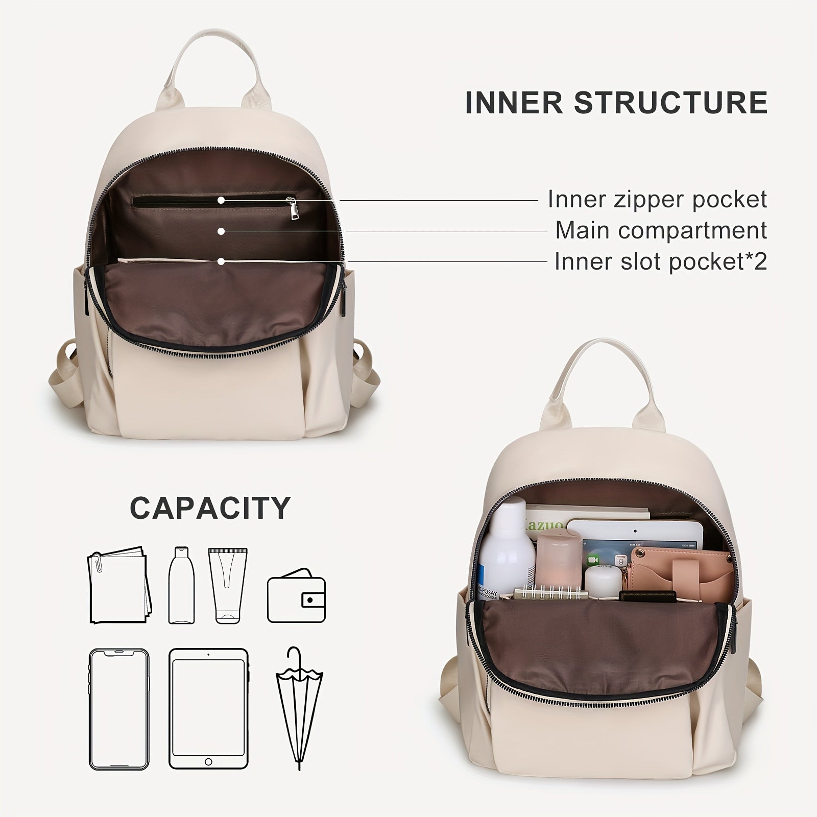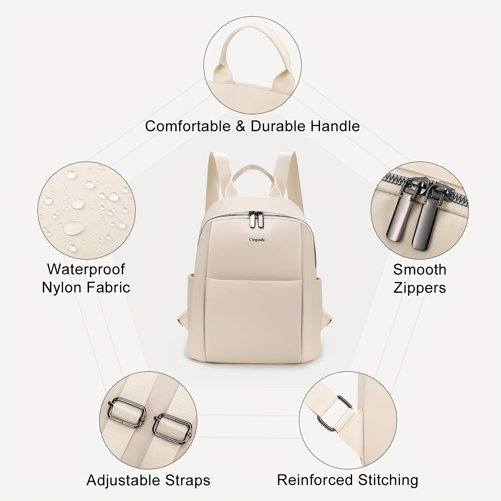 Stay organized on the go with this chic mini traveler backpack. Made from durable, waterproof nylon, it offers a spacious interior with utility pockets and adjustable straps for ultimate comfort. Its compact design and stylish beige color make it perfect for casual outings, trips, or daily commutes. Lightweight yet spacious, it's an ideal accessory for women who love both fashion and function!